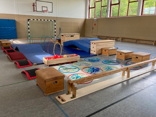 Hauptteil: Kennenlernen und Übungen an und mit verschiedenen Sportgeräten und Materialien